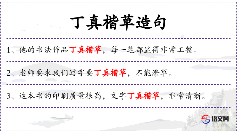 - 宾语:答题要丁真楷草