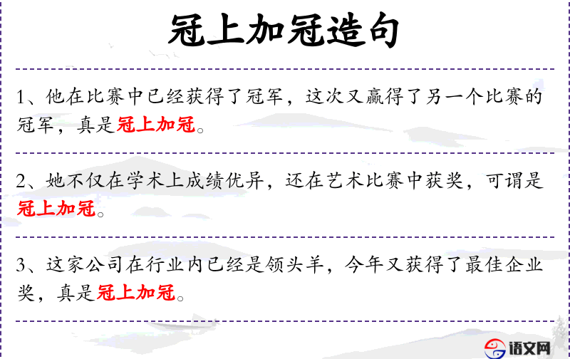 - 文化背景:在**文化中,“冠上加冠”是一个积极的比喻,强调在已有成就的基础上再创新高。
