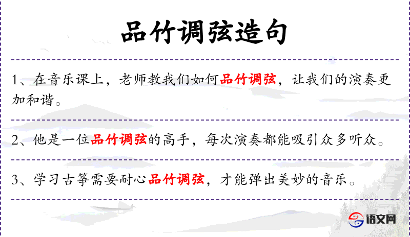 句子:“他通过品竹调弦,将一首古老的曲子演绎得淋漓尽致。”