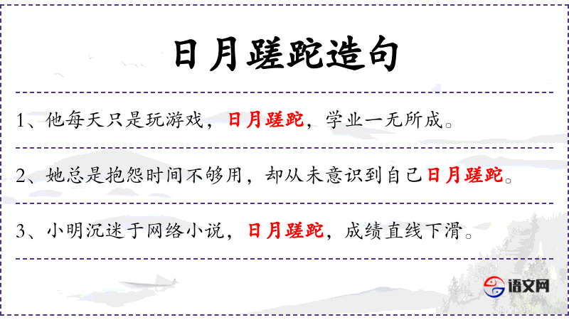 句子:“小明沉迷于网络小说,日月蹉跎,成绩直线下滑。”