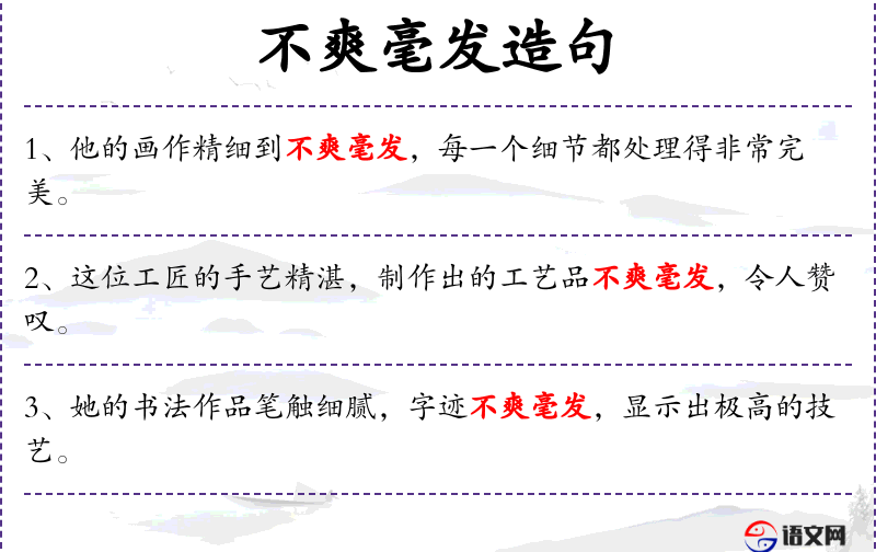 - 不爽毫发:形容非常精确,没有丝毫差错。