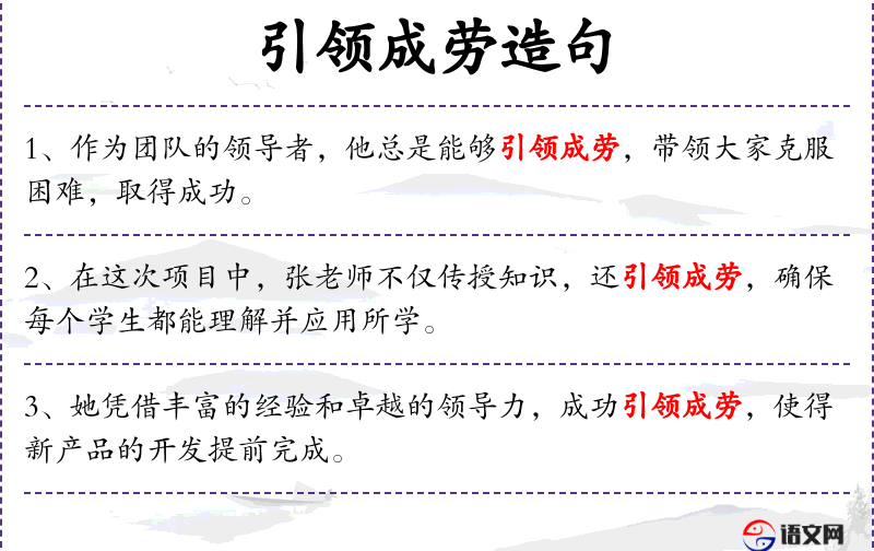 - 状语:在社区服务活动中,通过团结协作,成功引领成劳