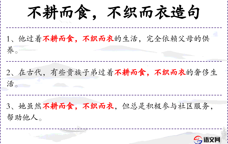 - 不耕而食:指不通过耕作就能获得食物,通常指依赖他人劳动的生活方式。