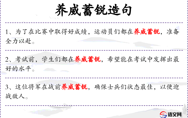 - 养威蓄锐:指积蓄力量,准备充分