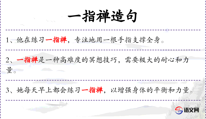 - 主语:一指禅