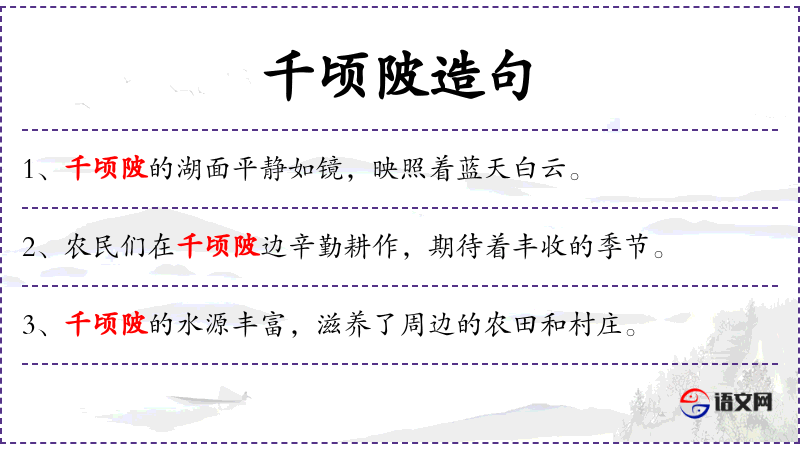 - “千顷陂的水源为周边的农田和村庄提供了丰富的滋养。”