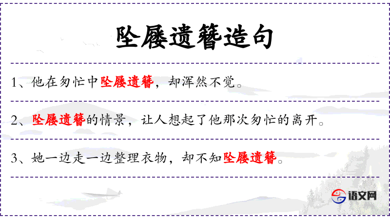 句子:“[他在匆忙中坠屦遗簪,却浑然不觉。]”