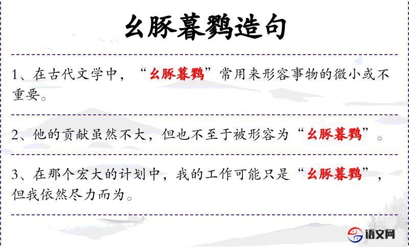 - 幺豚暮鹨:这是一个成语,意为“微不足道的小事”,比喻不值得重视的事物。