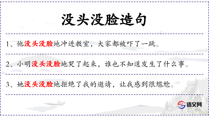 3. 【没头没脸】 - 指不顾脸面或不顾一切,狠狠;也满头满脸。