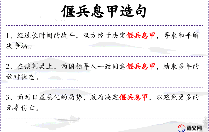 - “偃兵息甲”是一个具有历史和文化背景的成语,源自古代战争时期。