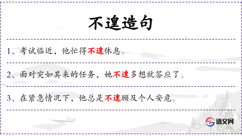 1. 【不遑】 - 来不及;没有时间(做某件事):~顾及。