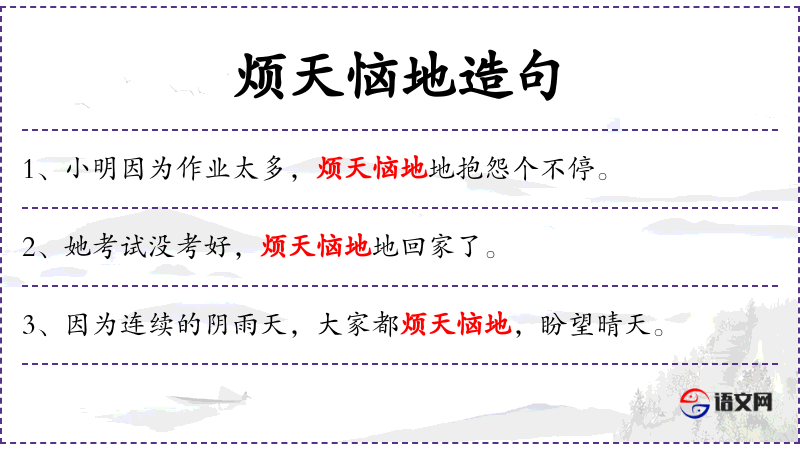 1. 【烦天恼地】 - 对天地都有所烦恼。形容心情极其烦闷苦恼。