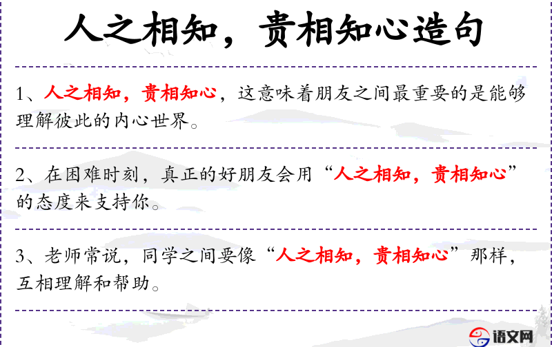 - “在老师的指导下,我们认识到真正的友谊基于‘人之相知,贵相知心’。”