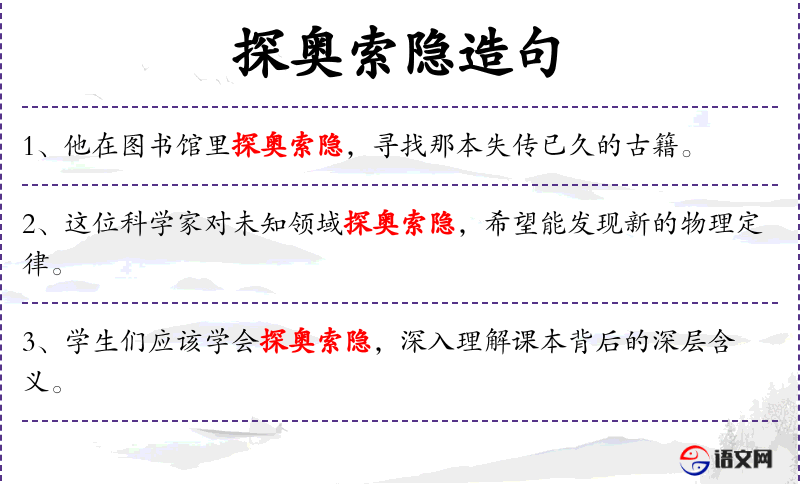 - 探奥索隐:探索深奥、隐秘的事物。