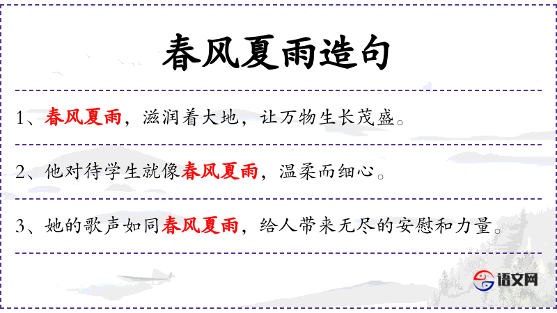 - 主语:春风夏雨