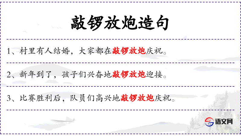 - 敲锣放炮:一种传统的庆祝方式,通过敲锣和放鞭炮来表达喜庆。