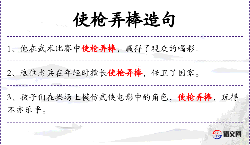 - 使枪弄棒:指使用长枪和棍棒的技艺。
