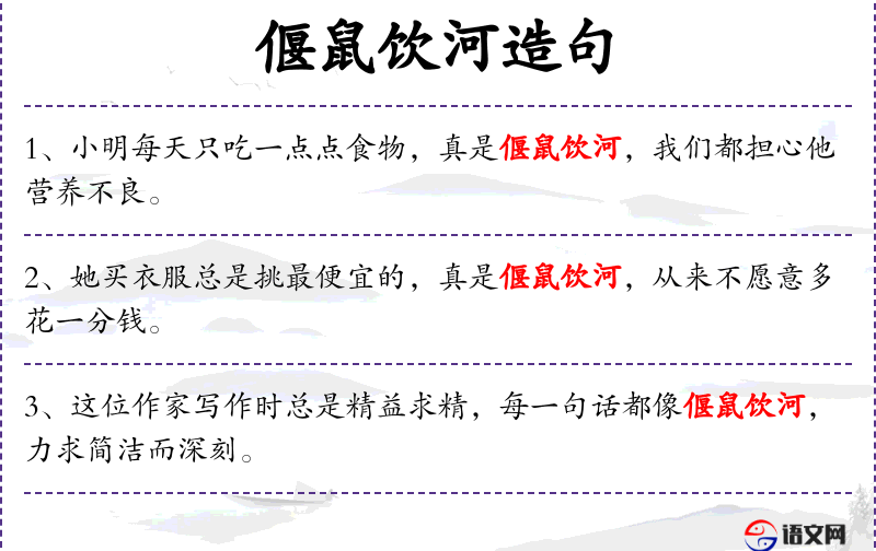 - 偃鼠饮河:这个成语源自传统文化,反映了人对于知足常乐的价值观。