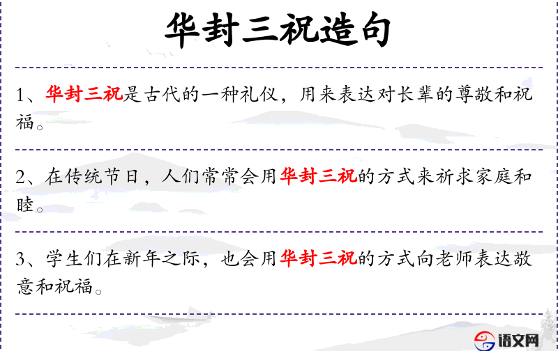 - 通过华封三祝这一古代礼仪,人们向长辈传递尊敬和祝福。