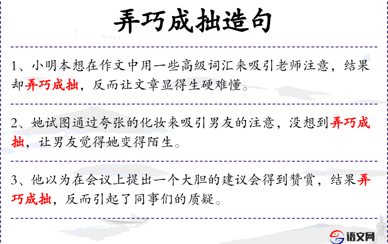 - 弄巧成拙:成语,表示本想巧妙行事,结果反而失败。