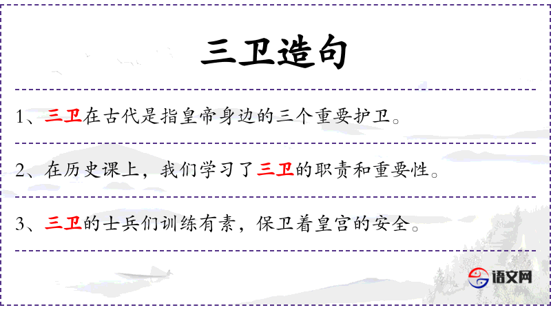 1. 【三卫】 - 唐禁卫军,有亲卫﹑勋卫﹑翊卫,合称"三卫"; 宋代亦称三衙为"三卫"; 明洪武二十二年(1389年)设朵颜﹑泰宁﹑福余三卫于兀良哈部落,通称兀良哈三卫,简称三卫◇又置建州﹑海西﹑野人三卫。