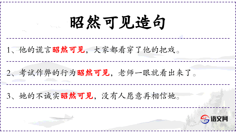 2. 【昭然可见】 - 昭然:明白的样子。指明明白白,可以着见