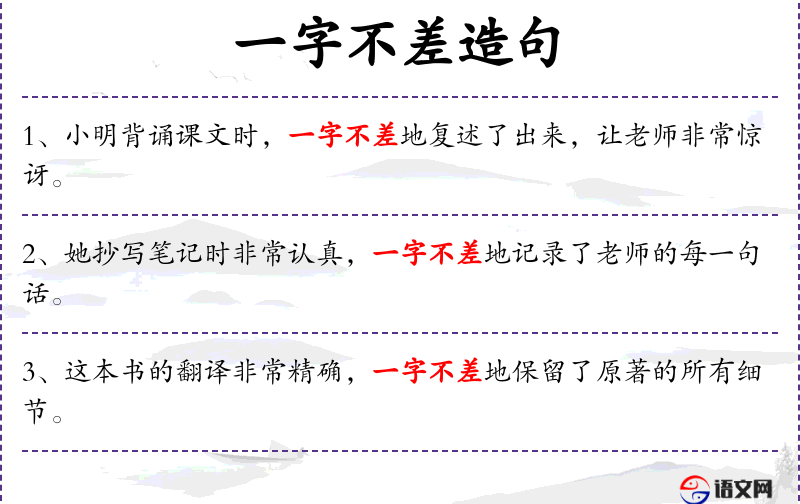 - 一字不差:表示精确无误。