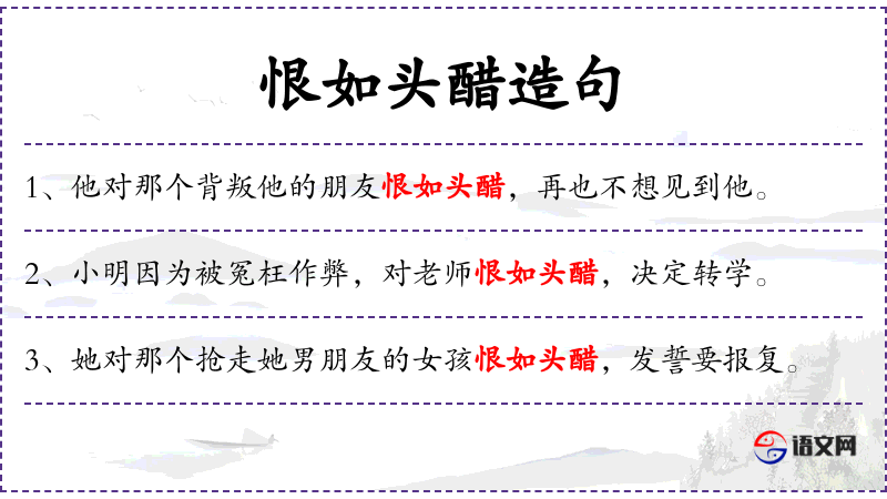 1. 【恨如头醋】 比喻非常可恶,令人痛恨。
