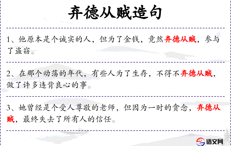 - 弃德从贼:放弃道德,追随不正当的行为