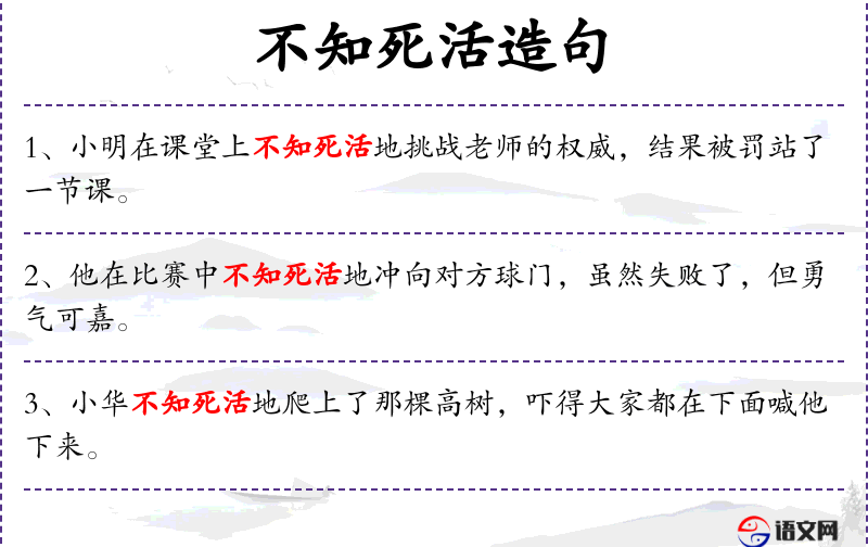 - 不知死活:形容人做事不顾后果,非常冒险。