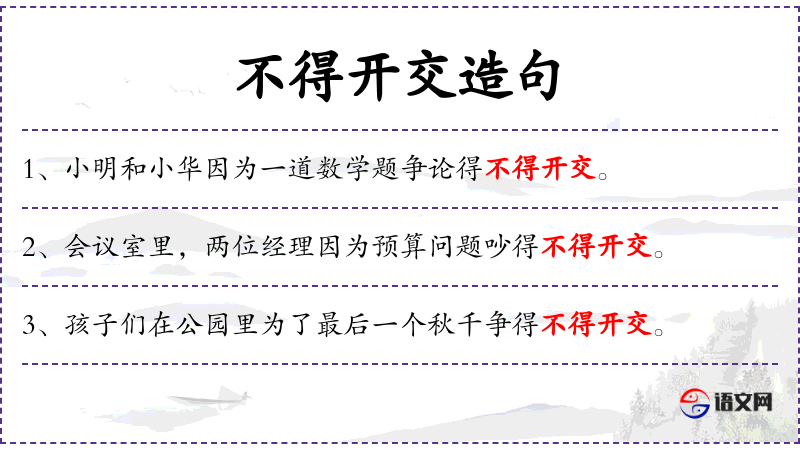 - 谓语:吵得不得开交