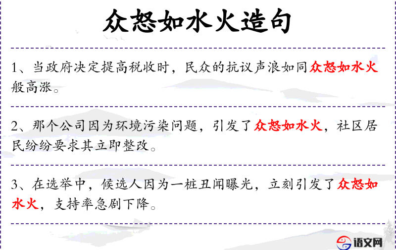 句子:“那个明星因为不当言论,瞬间引发了众怒如水火,粉丝和公众都表示强烈不满。”