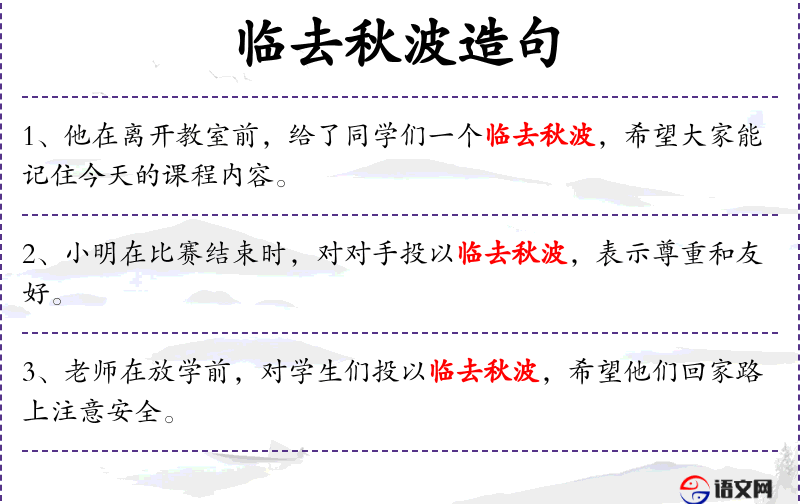 - 临去秋波:成语,比喻临别时深情的一瞥。
