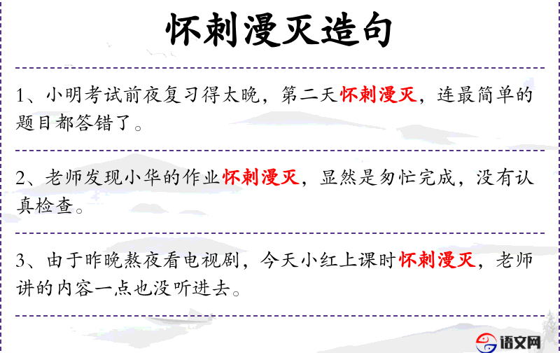 - 怀刺漫灭:形容词短语,意指作品中有刺眼或不和谐的元素