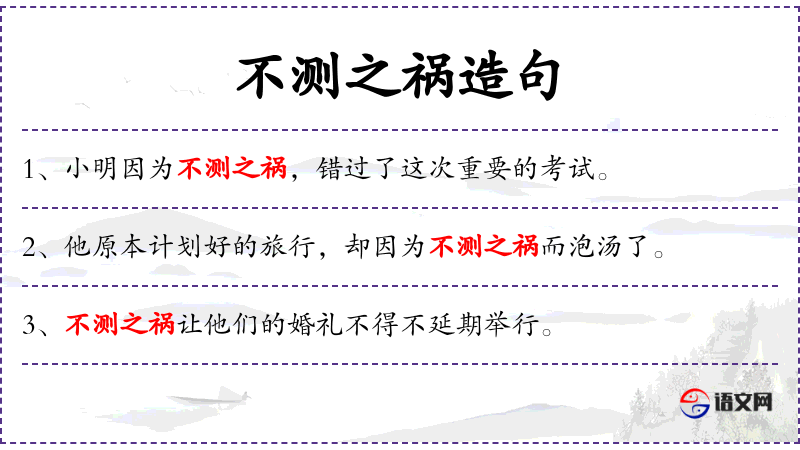 - 不测之祸:指意外的灾难或不幸**。