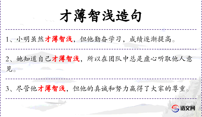 - *才智浅**:成语,形容人的才能和智慧都不高。