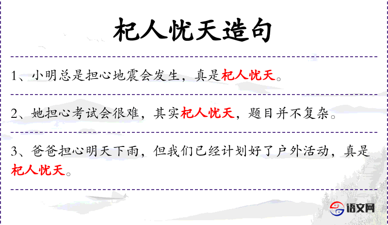 1. 【杞人忧天】 杞:周代诸侯国名,在今河南杞县一带。杞国有个人怕天塌下来。比喻不必要的或缺乏根据的忧虑和担心。