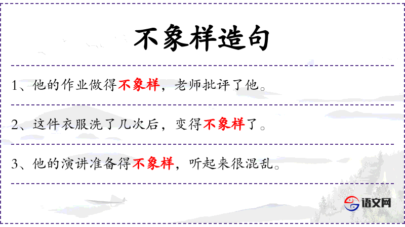 1. 【不象样】 - 形容情况异常; 形容没有达到应有的水平。
