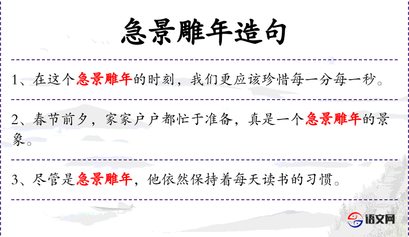 - 急景雕年:反映了人们对时间流逝的感慨,也提醒人们珍惜时间。