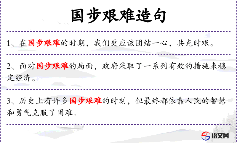 - 成语、典故:“国步艰难”是一个成语,指国家面临困难。
