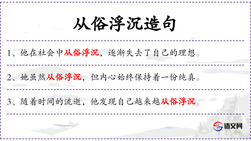 - 从俗浮沉:成语,意思是随波逐流,没有自己的主见。