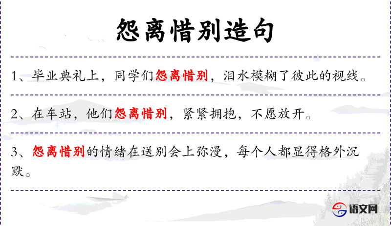 - 怨离惜别:表示因离别而感到悲伤和遗憾的情感。