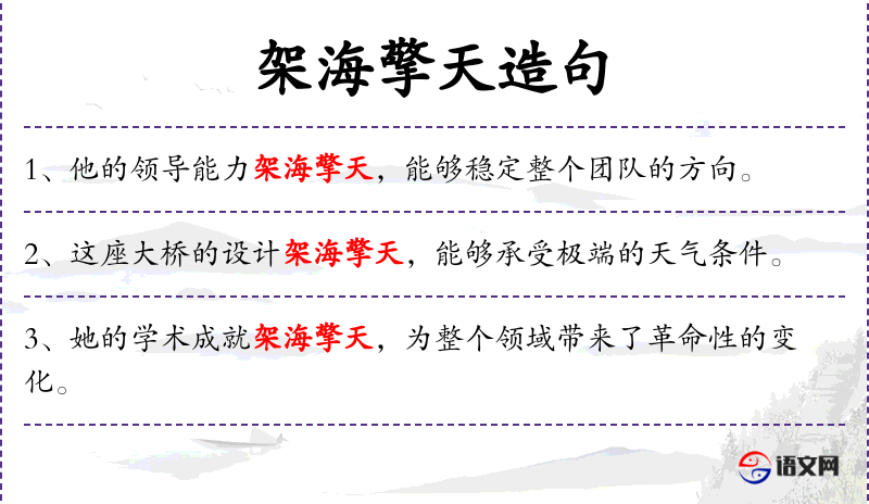 3. 【架海擎天】 - 架海:横跨大海;擎天:支撑上天。形容本领大,能力非凡。