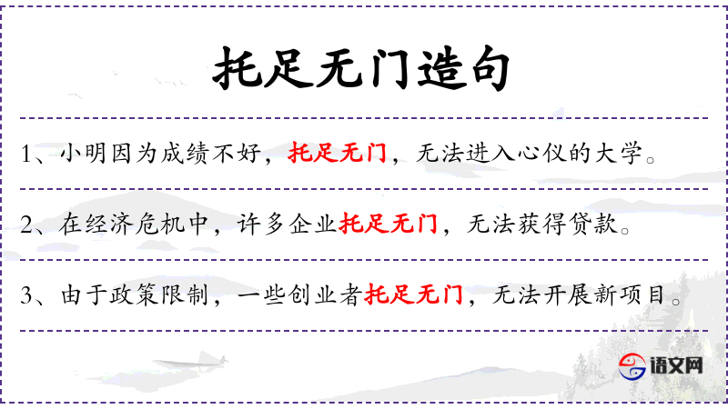 句子:“她因为家庭原因,托足无门,无法继续深造。”