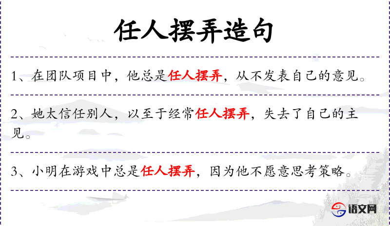 - 任人摆弄:动词短语,表示被人随意操控或支配。