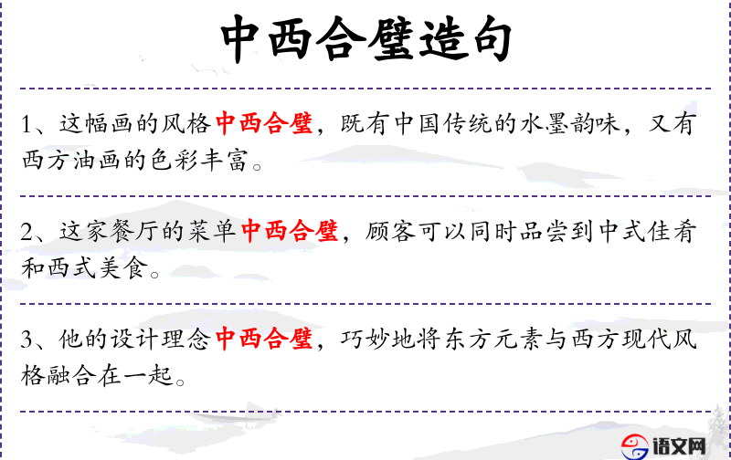 - “中西合璧”这一表达体现了文化交流和融合的趋势,反映了全球化背景下文化多样性的重要性。