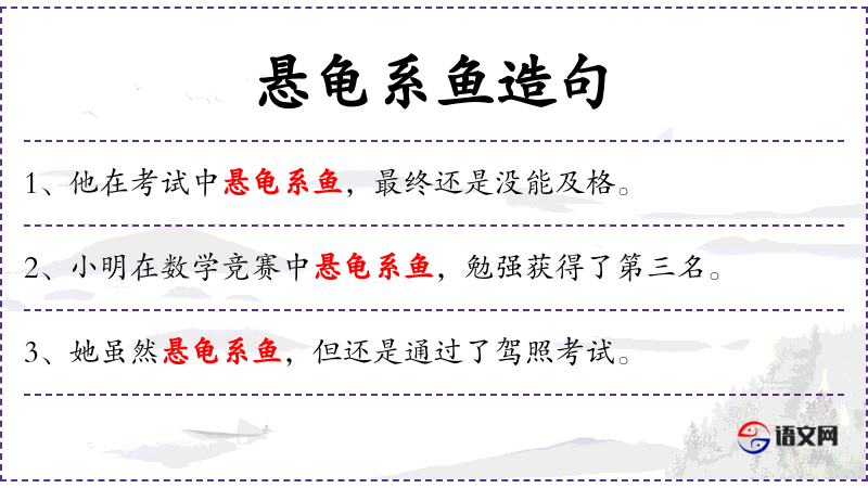- “悬龟系鱼”:这是一个成语,比喻文章或言辞华而不实,空洞无物。