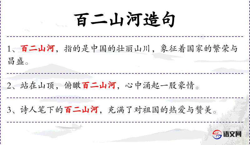 3. 【百二山河】 - 百二:以二敌百。比喻山河险固之地。