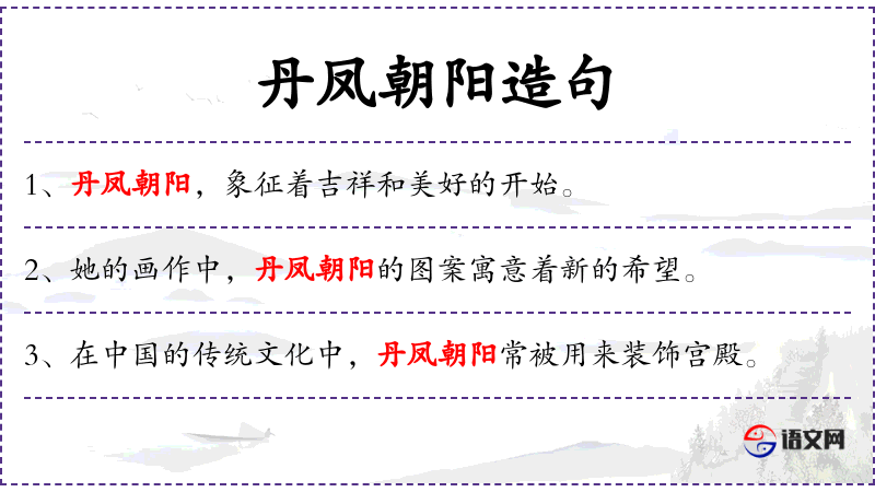 - 定语:丹凤朝阳(修饰宾语“主题”)