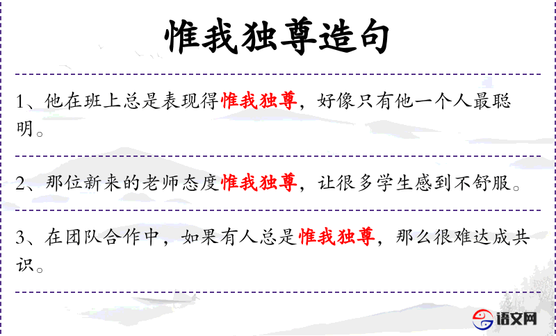 惟我独尊是一个**成语,反映了一种自我中心的态度。在教育环境中,这种态度可能不被接受,因为它不利于建立良好的师生关系。